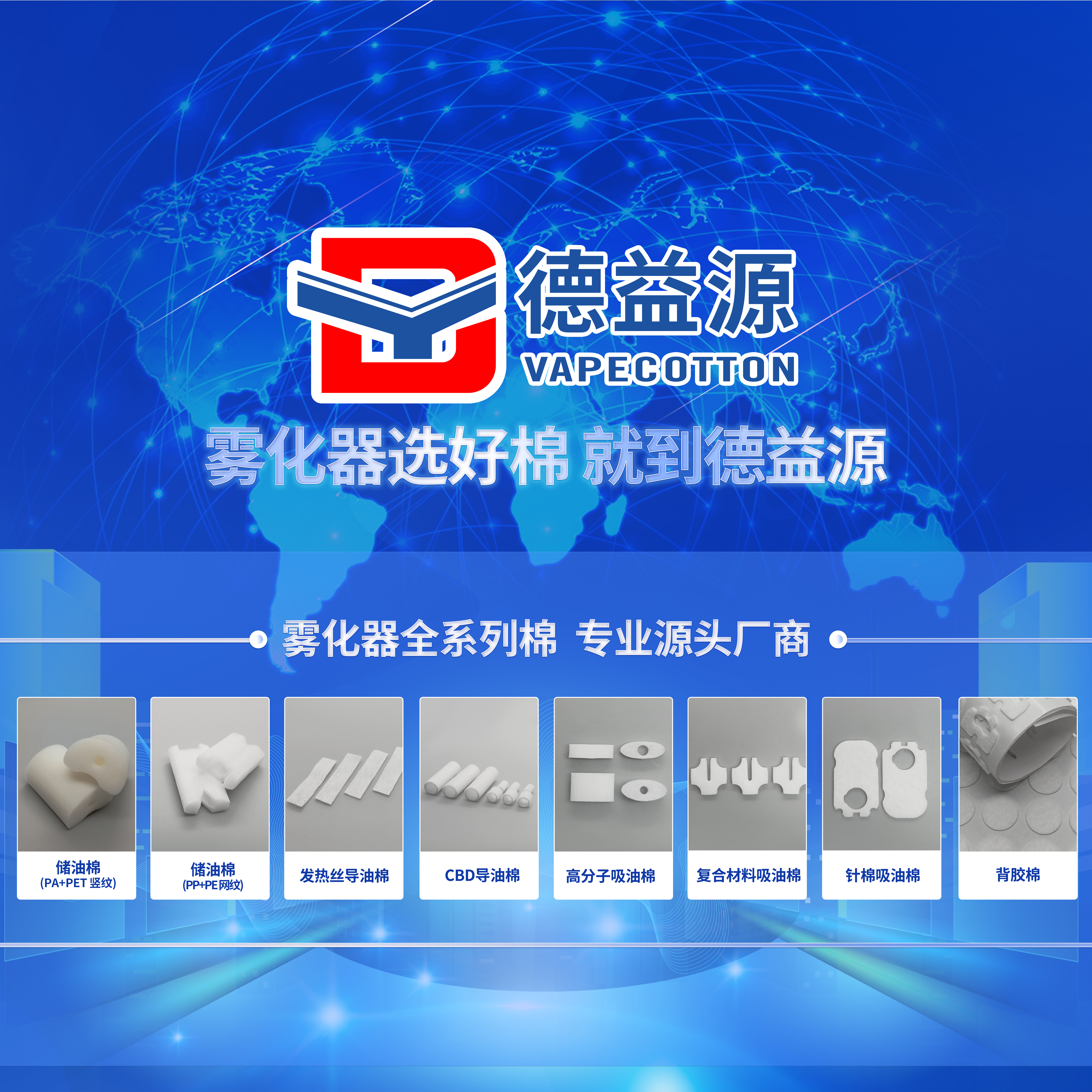 9月07-09日, 德益源將攜帶自研霧化器全系列 棉產(chǎn)品(儲油棉、發(fā)熱絲導油棉、吸油棉、背膠棉、濾嘴棉、CBD導...
